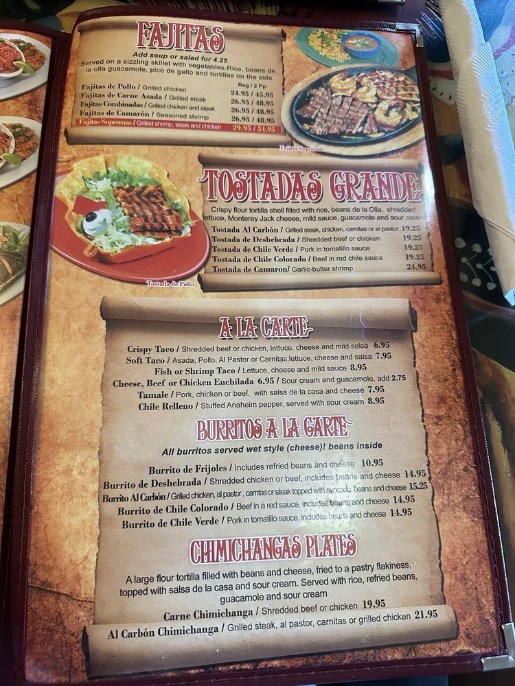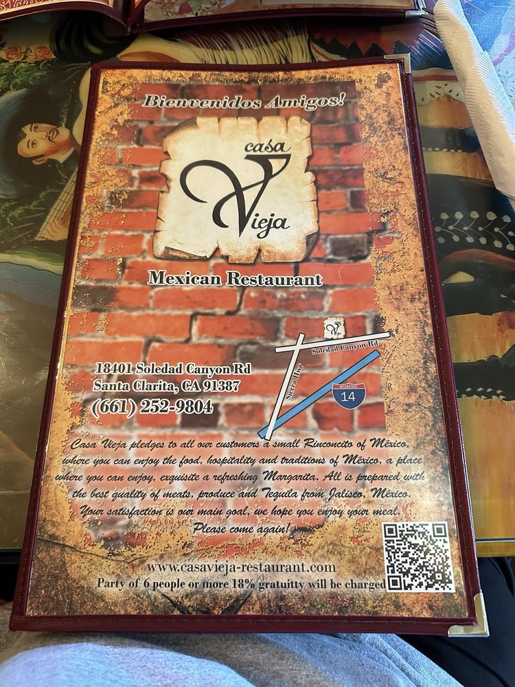 Introducing the menu at Casa Vieja, a Mexican Seafood restaurant in Santa Clarita, CA. The dinner menu includes traditional favorites like Huevos Rancheros and Menudo, as well as appetizers like Ceviche de Pescado and Mexican Buffalo Wings. Customers rave about the margaritas, fresh guacamole, and excellent service. The ambiance is described as warm and charming, with hand-painted furniture adding to the experience. While some customers mention higher prices for certain items, overall, Casa Vieja is praised for its delicious food and welcoming atmosphere. So, if you're in the mood for authentic Mexican cuisine with a family-owned touch, Casa Vieja is the place to be in Santa Clarita.