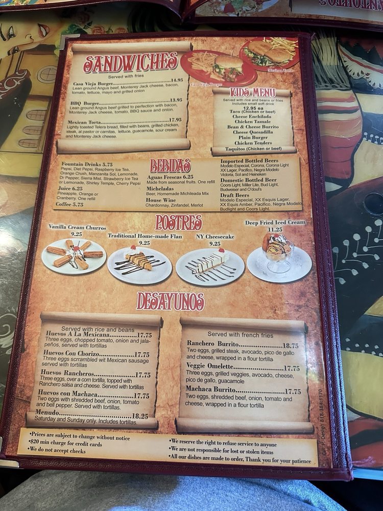 Casa Vieja Menu (2025 Update)